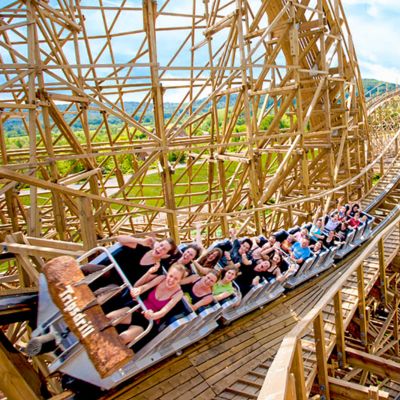 Als besonderes Highlight ist eine exklusive Fahrt mit der Holzachterbahn 2Mammut" inbegriffen.